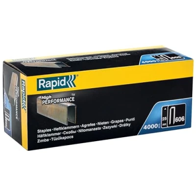 Rapid High Performance Staples for Dense Materials, Narrow Crown No. 606, Leg Length 25mm, Staple Gun Staples, Resin Coated Galvanised Steel, 4000 Pieces, Boxed (11737302)