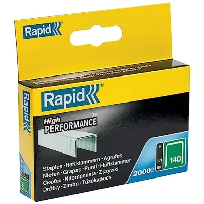 140/12mm Flatwire Staples: make fast work of a range of professional and DIY stapling tasks, including working with insulation material and thin plastics as well as thin cardboard and carpets Perfect For General Use: rust-resistant steel staples with precision cut legs for optimal material penetration, (ideal for working with insulation material, thin plastics, thin cardboard, and carpets) Specifications: No. 140 flatwire staples, 12mm leg length, 10.6mm breadth; our tools and staples are colour coded and marked with icons to make it easy to find the correct combinations. Pack of 2000 Compatibility: these 12mm staples for staple guns are equivalent to G / T50 / 140 / 11 / 4 type staples. For Rapid tools: R34, R44, R64, ALU740, ALU840, ALU940, R311, R54, E-tac, ESN114, BTX140, PS111 High Quality For Best Results: we understand the importance of staple quality and recommend using Rapid original staples with your Rapid tools to achieve the best possible results