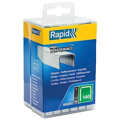 140/6mm Flatwire Staples: make fast work of a range of professional and DIY stapling tasks, including working with insulation material and thin plastics as well as thin cardboard and carpets Perfect For General Use: rust-resistant steel staples with precision cut legs for optimal material penetration, (ideal for working with insulation material, thin plastics, thin cardboard, and carpets) Specifications: No. 140 flatwire staples, 6mm leg length, 10.6mm breadth; our tools and staples are colour coded and marked with icons to make it easy to find the correct combinations. Pack of 5000 Device Compatibility: these 6mm staples for staple guns are equivalent to G / T50 / 140 / 11 / 4 staples. For Rapid tools: R14, R34, R44, R64, ALU740, ALU840, ALU940, R11, R311, E-tac, ESN114, PS111 High Quality For Best Results: we understand the importance of staple quality and recommend using Rapid original staples with your Rapid tools to achieve the best possible results