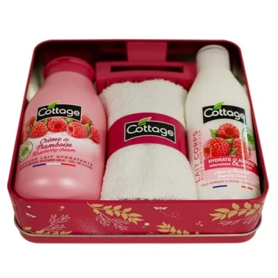 Naturally derived formula A gourmet offer with raspberry Dermatologically tested Box contents: 1 x raspberry moisturising shower milk 250 ml + 1 x raspberry moisturising body lotion 200 ml + 1 cotton towel + 1 hair clip Our shower gels are produced and assembled in France