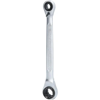 On both sides there are 2 different spanner widths Extremely small follow-up angle of 5° Matte chrome-plated design allows optimal grip and ensures high ergonomics in use Optimum power transmission on the flanks, without damage to the screw and nut Made from high quality chrome vanadium steel for extra durability