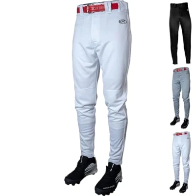 Rawlings Men's Launch Series Baseball Pants Tapered Jogger Fit Adult Sizes Solid Multiple Colors, White, M