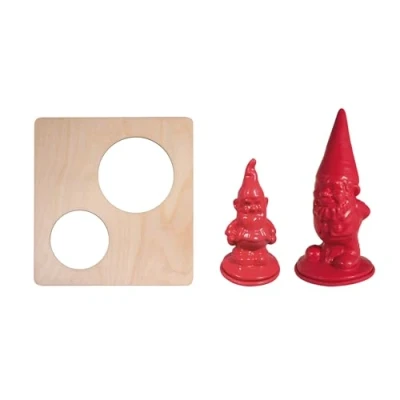 DIY kit: 2 latex moulds "Large and small garden gnome", 1 stamp holder, 1 instruction Large gnome 8 x 21.5 cm, small gnome 6 x 12.5 cm, integral latex moulds, thin material, very stable and flexible, reusable The construction is very easy, thanks to the elastic latex material, the object can be easily deformed The wooden mould holder with 2 free spaces makes pouring easier, when casting the moulds are inserted into a container with water with the stamp holder Latex moulds are heat resistant only up to max. 60 °C