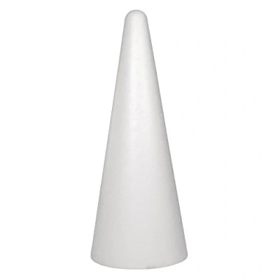Ideal for a variety of art and craft projects. Embellish the plain white surface with fabric, felt, yarn or ribbons. Try the decoupage technique and use paper napkins and découpage papers to add pattern and lovely images. It makes also a perfect base for needle felting and textile projects Transform this cone into adorable dolls, angels, and gnomes. Make fun characters and complete them with hair and hats. A wonderful craft material for crafting with kids. Children can design a puppet, animal, monster, fairy and more Create stunning centrepieces or highlight your flower arrangements with this polystyrene shape. Apply concrete paste for a solid, stonelike look. Paint it with metallic paint or cover it with sequins and decorative pins for dazzling results Whether you are looking for a modern home décor piece, a fun base for your figurine or a traditional table decoration piece, this lightweight material is suitable for a wide range of craft projects Height: 50cm, Bottom diameter: 20cm