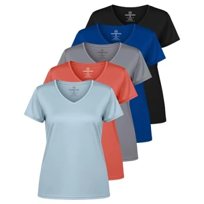 Available in regular and plus size, the ideal short sleeve v neck active top for yoga, exercise, fitness, gym, running, any type of workout, or everyday use. 4-way stretch, sweat-wicking dry fit material with bound edges and interlock seams so you won't experience chafing or rubbing Banded V-neck and tag-free neck label offer you maximum comfort. Flexible fabric fits any cup size and straight hem, designed for a hidden or non tucked look Perfect match with trousers, leggings, shorts, shirts for a cool everyday look, makes you more beautiful, sexy and elegant.