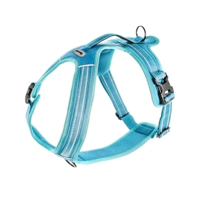 Size M: The Action Alps dog harness size M, circumference 60-72 cm, is a high quality product, perfect for those who are looking for a sturdy and durable support for their dog during walks or for relaxing moments outdoors. Material: Made of braided nylon, the Action Alpi dog harness is safe and very reliable, precisely because this material is able to support a high load capacity, ensuring maximum comfort and safety. REFLECTIVE BANDS: The blue harness is equipped with 3M ScotchLite reflective bands, which make it visible even in the dark, increasing safety during night walks. SNAP CLOSURE: The Action Alps of Record dog harness is the practical and comfortable accessory you were looking for your dog. Easy to put on and take off thanks to its aluminium snap closure. MAXIMUM COMFORT: Designed to reduce the risk of irritation due to chafing, this dog harness is made with detailed stitching and is equipped with foam padding to ensure soft and comfortable support.