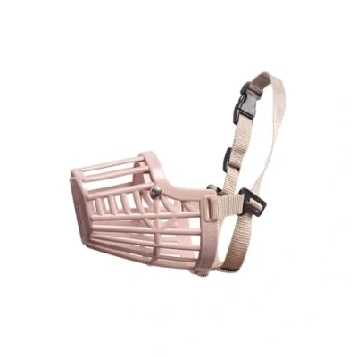 Record Dog Muzzle Made of Plastic with Adjustable Nylon Strap Practical Closure Clip Size 3XL Beige