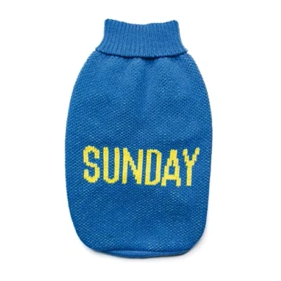 Record Dog Sweater Everyday Soft High Neck with Elasticated Waistband, Embroidered 'Sunday' Blue, S Back Length 35cm