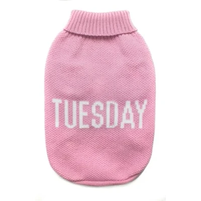 Record Dog Sweater Everyday Soft High Neck with Elasticated Waistband, Embroidered 'Tuesday' Pink, S Back Length 35cm