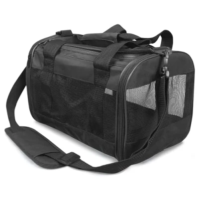 Record Rectangular Waterproof Fabric Carrier for Dogs and Cats. Bag with Mesh Sides, Shoulder Strap Removable Faux Fur Inner Size: M 46 x 25.5 26.5 h