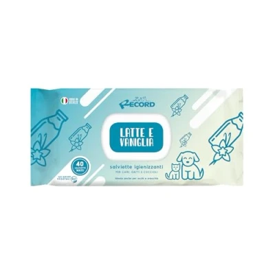 Sanitizers: With the Record dog wipes your pet will always be clean. Comfortable and useful dog wipes at any time of the day for a complete and delicate hygiene. DELICATE: Record sanitizing cat wipes have a formulation specially designed to not irritate your pet, while obtaining a deep and effective cleaning and deodorization. SHINY HAIR: thanks to a non-aggressive cleansing, the dog wipes leave the hair clean, soft and shiny, respecting the skin and pH of the animal. Also ideal for cleaning dog paws. AROMA FOR EVERY OCCASION: Record dog wipes and cat wipes are available in a wide variety of flavouring fragrances: Talc, White Musk, Lavender, The Green, Aloe Vera, Lemongrass, Chamomile, Honey, Milk and Vanilla, Chlorhexidine, Apple, Argan, Mint, Powdered Sugar. RECORD: is a brand of Rinaldo Franco S.p.A. historic Italian pet care company, owner of the Record, Cat&Rina and Acquafriend brands and official distributor of brands such as Julius-K9 and Tetra. For over 60 years our mission has been to improve the quality of life of small animals by offering the widest range of pet products and accessories.