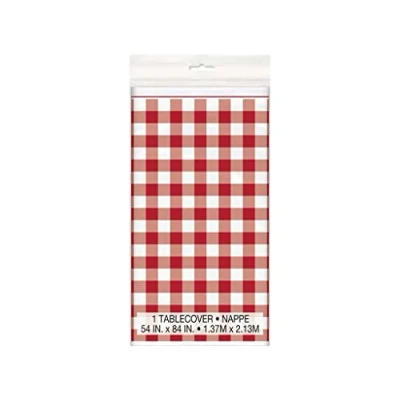 BOLD RED GINGHAM DESIGN: Our rectangular plastic table cover features a vibrant and classic red gingham pattern that adds a touch of charm and warmth to any party, picnic, or event, making it the perfect choice for your table setting needs. DURABLE PLASTIC MATERIAL: Made from high-quality plastic, this table cover not only looks great, but it also provides excellent protection from spills and stains, ensuring your table stays clean and tidy throughout your event. PERFECT FOR PICNICS & EVENTS: Whether you're hosting a birthday party, family gathering, or outdoor barbecue, our table cover is designed with versatility and convenience in mind, making it the ideal choice for any occasion. GENEROUSLY SIZED: Measuring 137.16Cm x 213.36Cm, our red gingham rectangular plastic table cover is large enough to fit a variety of table sizes, accommodating both indoor and outdoor festivities with ease. BOOST YOUR PARTY THEME: Pair this red gingham rectangular plastic table cover with matching napkins, cups, and plates to create a cohesive and stunning setup that's sure to impress your guests., Manufacturer: Unique
