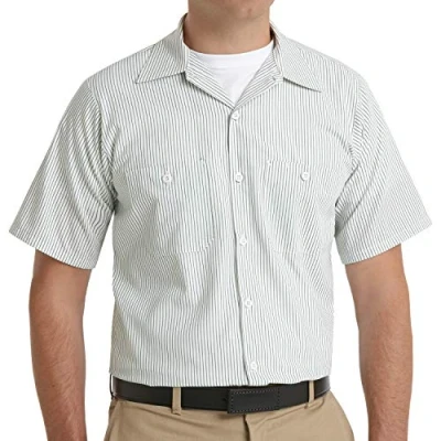 Red Kap Men's Button Down Shirt, White/Green Stripe, S