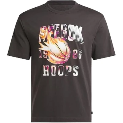 Reebok Men's GS Basketball On Fire T Shirt, Washed Black, L
