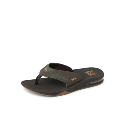 Reef Fanning Mens Bottle Opener Flip Flop, Arch Support, Durable Outsole, Water Friendly, Brown/Gum, 6
