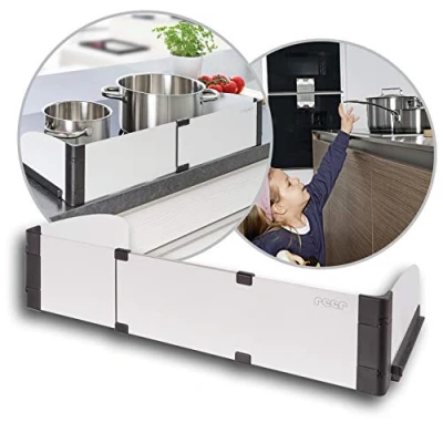 Sturdy stove guard: protects your child from burns and scalds No need to touch the hot stove and pull down hot pots, recommended age: babies and children 6 - 36 months Safe child protection design: holds reliably and allows convenient cooking at the same time Easy assembly with sturdy adhesive tape: no drilling or screwing, removable thanks to the sophisticated plug-in system for all stove sizes from 55 to 61cm, electric stoves and induction stoves NEW NOW. Child lock with optimized plug-in and holding system