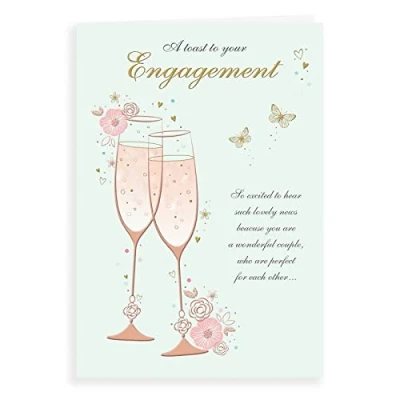 A High Quality Greeting Card and Envelope From Regal Publishing Designed and made in the UK - supporting British jobs Caption: Engagement Description: Champagne flutes Approximate size: 9 x 6 inches