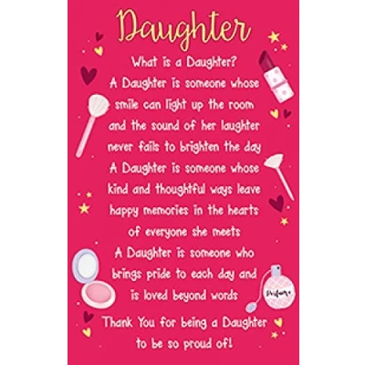 A High Quality Greeting Card and Envelope From Regal Publishing Designed and made in the UK - supporting British jobs Caption: Daughter Description: KS What is a Daughter Approximate size: 54 x 85 mm