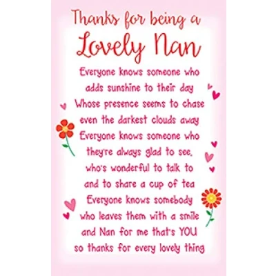 A High Quality Greeting Card and Envelope From Regal Publishing Designed and made in the UK - supporting British jobs Caption: Nan Description: KS Nan Thanks for being Approximate size: 54 x 85 mm