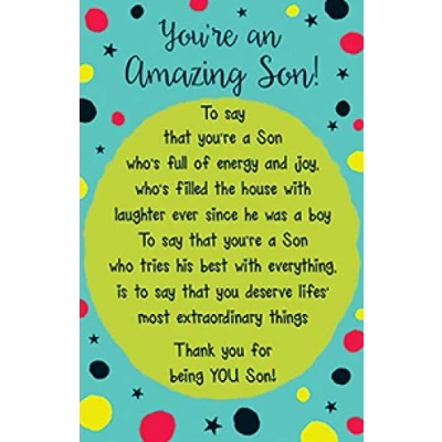 A High Quality Greeting Card and Envelope From Regal Publishing Designed and made in the UK - supporting British jobs Caption: Son Description: KS Son You're amazing Approximate size: 54 x 85 mm