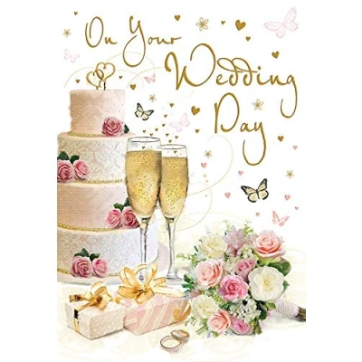 A High Quality Greeting Card and Envelope From Regal Publishing Designed and made in the UK - supporting British jobs Caption: Wedding Description: Cake, champagne Approximate size (inches): 9 x 6