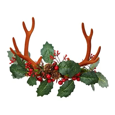 "REINDEER HORNS WITH HOLLY AND PINE CONES"