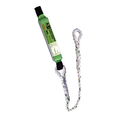 Length: 1. 5 m Connecting means with shock absorber Rope ends intertwined and covered with a polyethylene protective cover One rope end equipped with a fall absorber, an abrasion-resistant cap is attached to the other end of the rope Braided rope made of three cords made of polyamide with a diameter of 12 mm, equipped with green-black indicator, indicating material consumption, tear-resistant at least 25 kN, according to ISO 1140