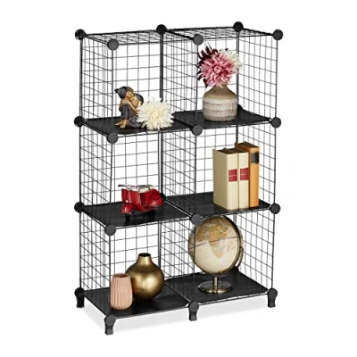 Relaxdays Boltless Shelving Wire Mesh 6 Compartments Cube System Plastic Insert H x W D D: 98.5 64.5 31.5 cm Black
