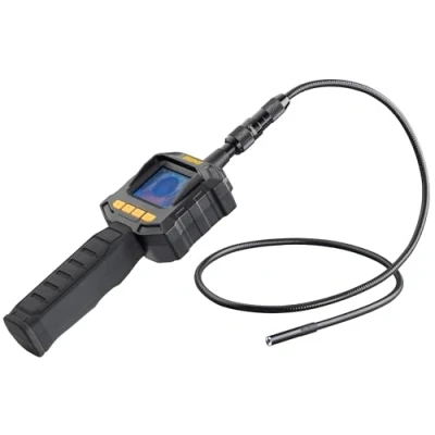 REMS MiniScope Set Mobile Handy Camera Endoscope For cost-effective inspection and damage analysis of hard-to-reach areas such as cavities, shafts, pipes etc. Controller unit with 2.3" TFT LCD colour display. Technical details: 4 x 1.5 V AA LR6 batteries. Camera cable set Color 8‑1 with 1 m malleable sliding cable and surface-mounted mirror, attachment hook, mounting magnet. In a sturdy case.