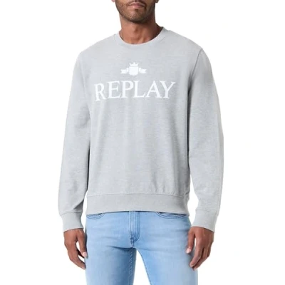 Replay Men's Logo Sweatshirt, M08 Light Grey Melange, S
