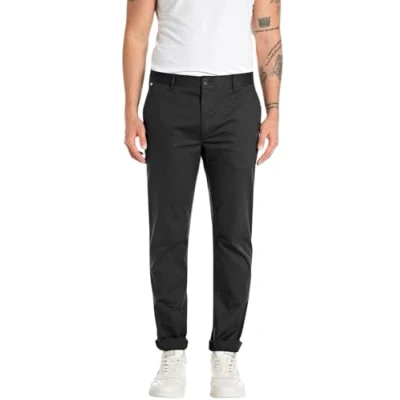 CHINO FIT: These light yet elegant trousers have a very flattering cut that is ideal for everyday wear or the office The waist fit is normal and the leg cut gets narrower from the knees to the bottom edge WITH STRETCH: The stretch content makes the trousers particularly stretchy and ensures a comfortable fit BUSINESS CASUAL: The versatile trousers can be easily combined for any occasion Whether with shirts, knitted sweaters or casual T-shirts, the high-quality chinos complete your look CARE INSTRUCTIONS: It is recommended to wash the trousers on a gentle cycle at 30 °C and iron them up to a maximum of 110 °C REPLAY has been one of the leading Italian premium denim and lifestyle brands for men and women for 40 years The brand stands for innovation, authenticity and places an increased focus on sustainability