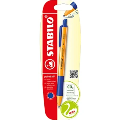 Retractable ballpoint pen in the same fabulous style of the world famous STABILO point 88. CO2 emissions generated for this product are fully compensated Available in 6 colours. Blue, black and green ink is document proof. The pen has a line width of 0.5 mm and is easy to refill. Its non-slip grip zone makes writing more comfortable.