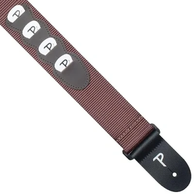 Never loose your picks again with this innovative storage strap Fully adjustable 2" wide nylon straps with leather pick pocket. 39" to 58".