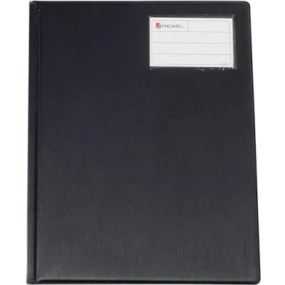 Stylish and strong textured cover Business card holder for personalisation. Storage pocket inside front cover for loose papers. Heavy duty pockets embossed to reduce glare and finger marking.