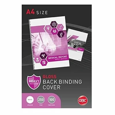 Unpunched High sheen gloss covers with extra smooth luxury finish For use with all binding systems (except thermal binding) Paper size: A4 Material: plastic Number of items: 100.0 Package Weight: 3.4 pounds Package Dimensions: 29.6 L x 3.2 H x 21.2 W (centimeters)