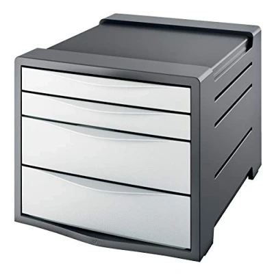 4 drawer A4 cabinet in white with 2 small and 2 large drawers for additional versatility both at home and in the office 4 easy glide drawers to prevent drawers from falling out and to provide effortless document access Versatile storage unit containing 2 small drawers for storing smaller items such as pens, rulers or documents and 2 large drawers for storing utensils Closed drawer fronts for privacy of stored documents coupled with curved lip for easy opening Contents: 1x Rexel 4 Drawer A4 Cabinet, Dimensions (WxHxD): 285x245x372mm, Colour: White, Choices Range, 2115608