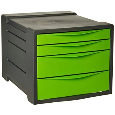 Amazon4 drawer A4 cabinet in green with 2 small and 2 large drawers for additional versatility both at home and in the office 4 easy glide drawers to prevent drawers from falling out and to provide effortless document access Versatile storage unit containing 2 small drawers for storing smaller items such as pens, rulers or documents and 2 large drawers for storing utensils Closed drawer fronts for privacy of stored documents coupled with curved lip for easy opening Contents: 1x Rexel 4 Drawer A4 Cabinet, Dimensions (WxHxD): 285x245x372mm, Colour: Green, Choices Range, 2115612