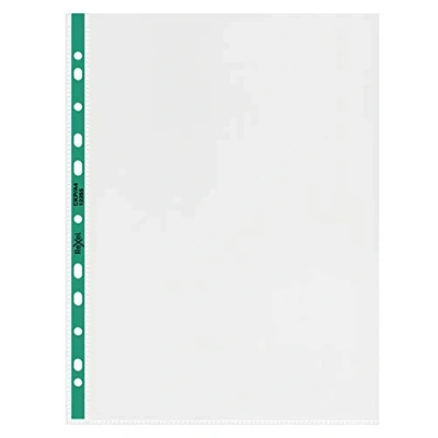 Top opening pocket, holds up to 25 x A4 documents, ideal for storing, organising and protecting unpunched documents in ring binders and lever arch files 90 micron thick polypropylene with a glass clear finish, means you can photocopy without removing the documents from the pocket Green multi-punched reinforced strip fits most binders and adds style and strength Ink safe meaning print doesn’t transfer, keeping documents clean and in original state Contents: 1 x Pack 25 Rexel Copy King A4 Punched Pockets with Green Spine, Glass Clear, 2115705, Dimensions: (W x H x D) 302 x 230 x 1 mm