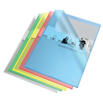 Quality A4 clear L-folders with top and right side openings, ideal for filing and storing frequently reference paper work and handouts at home or in the office Holds up to 40 A4 documents with a cut flush finish and thumb hole for easy access to contents Copy-safe material, preventing text lifting from paper to plastic Strong 115 micron tear resistant with embossed finish to prevents fingerprints or grease marks, water resistant Contents: 1x Pack 25 Rexel Quality A4 Document Folders, Assorted colours; 5 x Blue, 5 x Red, 5 x Yellow, 5 x Green, 5 x Clear 2115640, Dimensions (W x D x H mm): 220 x 1 x 307