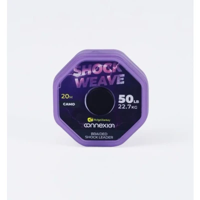 RidgeMonkey Connexion Shock Weave Braided Shock Leader - Ultra strong braided shockleader without stretch - Strength: 50lb/22.7kg - Size: 20 metres - Colour: Green/Brown camouflage colour - No stretch - Ultra strong - Super smooth and supple - Ideal for long distance fishing - This Shock Leader may not be missing in your distance fishing! At 50lb/22.7kg, the RidgeMonkey Connexion Shock Weave Braided Shock Leader is an ultra strong smooth braided shockleader with no stretch. Essential for distance fishing, the strong shockleader helps prevent breakage on long distance casts. The Braided Shock Leader is designed to transfer all the power to the blank during the cast. The supple braided line actually flies through the rod’s eyes during the cast and then evenly follows the contours of the lakebed. This leader is finished in a green-brown camouflage colour. This Shock Leader should not be missing from your tackle box!