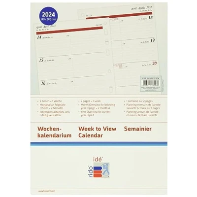 rido/idé Weekly Calendar Timing 1 2024 2 Pages = Week A5 White
