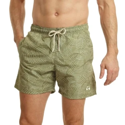 Ript Performance Men's Essentials Quick Dry UV 50 Sun Protection Swim Shorts Trunks,Khaki Leaf Print, L