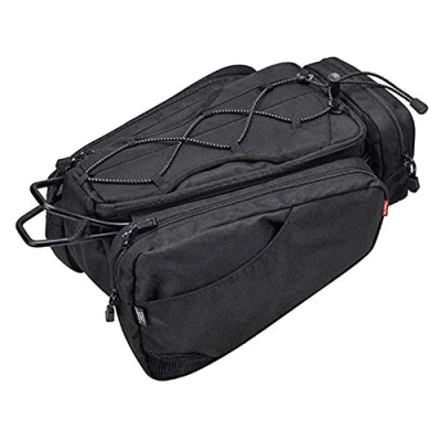 Sportive look and lots of space. Roomy main compartment, side bags with additional side compartment.