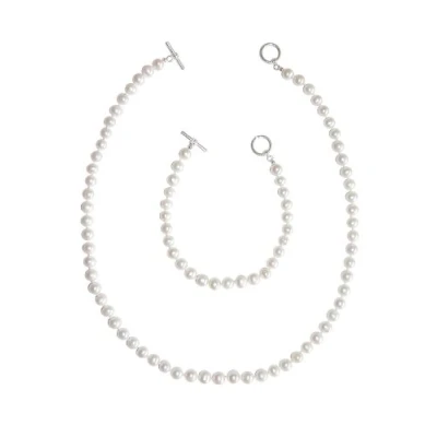 Cultured freshwater pearls necklace and bracelet Pearls size: 5.8 mm to 6.8 mm Collier size is 42 cm Bracelet size is 17 cm Ideal jewellery gifts for women