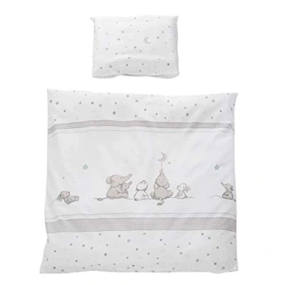 This 2-piece roba cradle bed linen from the "Star Magic" collection in grey, white and mint-coloured star magic design is a highlight in the baby's room The cradle bed linen ensures a healthy sleeping environment and guarantees the best sleeping comfort All materials used in the reversible bedding are tested for harmful substances and certified. In addition, they are regularly checked during production The cradle set is made from skin-friendly and breathable cotton and is machine washable and suitable for tumble drying The high-quality 2-piece reversible bed linen consists of a pillowcase 40 x 35 cm and a duvet cover 80 x 80 cm