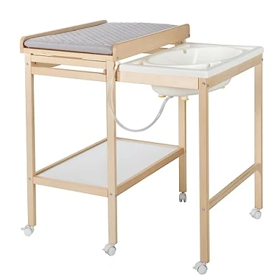 roba Bath Changing Combination + Mat Style Grey Mobile Table with Integrated Bathtub Extendable Surface Natural Wood