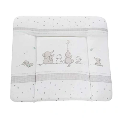 The Roba changing mat in star magic design ensures safety when changing with its 3-sided raised edge The surface of the polyurethane coated changing table mat is particularly skin-friendly and cuddly The changing mat made of cotton polyester blend and phthalate-free PU coating is softly padded, so that your baby is comfortable All materials used are tested for harmful substances, certified. The surface of the changing mat is wipeable and easy to clean The dimensions of the Roba changing mat of 85 x 75 cm, height approx. 4 cm, adapted to most "standard changing dressers"