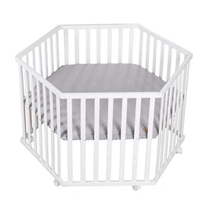 roba Hexagonal Playpen Baby Play Pen + Insert Style Grey 3 Way Height Adjustable Mobile with Wheels Wood White
