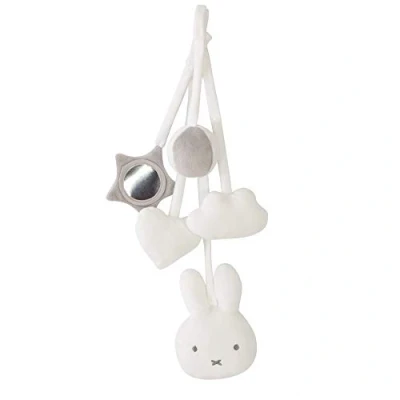The 5 hanging toys in a cute Miffy design are ideal for discovering colours, textures, and sounds The pendants can be easily attached to the play arch with a press stud The baby toy has been developed according to the latest safety standard EN71-1: 2014 in Germany All materials used are tested for harmful substances and certified. The fabrics used are particularly soft and skin-friendly