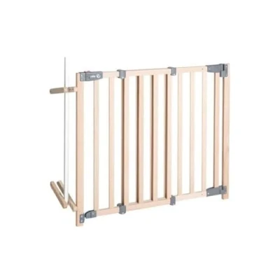 The natural-coloured roba stair guard with a variable adjustment width of 93.5 - 120.5 cm can be securely and stably attached to stair posts, banisters and walls The safety gate was developed in Germany according to the latest safety standard EN 1930 : 2011 and produced in Europe Thanks to the particularly practical magnetic lock with traffic light function, the door closes automatically and can be operated with one hand The grid is made of organic beech solid wood from sustainable forestry. All materials are tested for harmful substances, certified and bear the EPH quality seal of the Institute for Wood Technology. The varnish is saliva-proof and kind to the skin The grille can be used as a door grille and stair gate and is therefore an ideal protective grille for children and pets.the total height is 83.5 cm